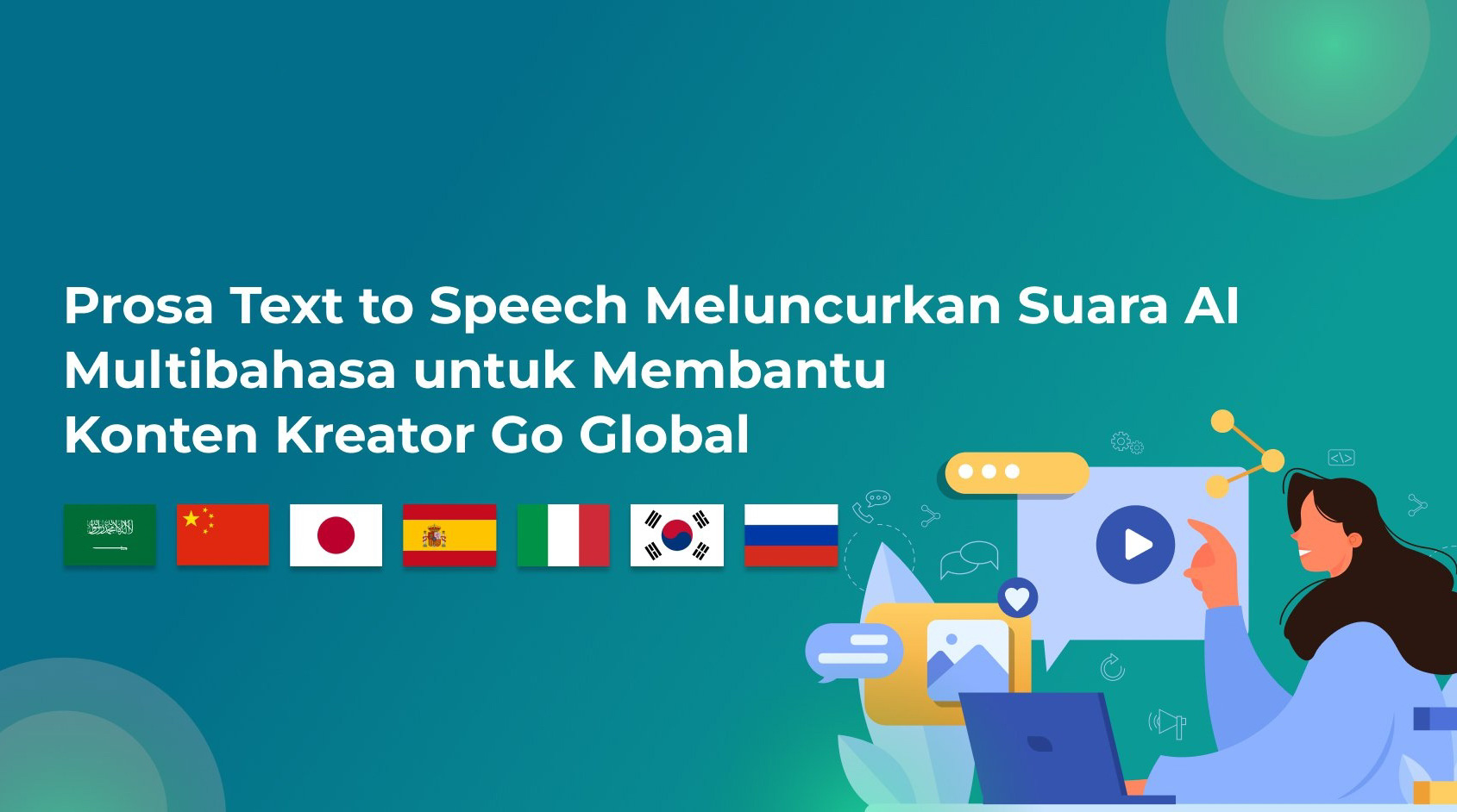 JAKAARTA | ARTIK.ID - Prosa Text to Speech sebagai alat voice AI terkemuka di Indonesia telah menambahkan koleksi suara AI multibahasa antara lain Bahasa Arab, Mandarin, Jepang, Spanyol, Italia, Korea, dan Rusia.