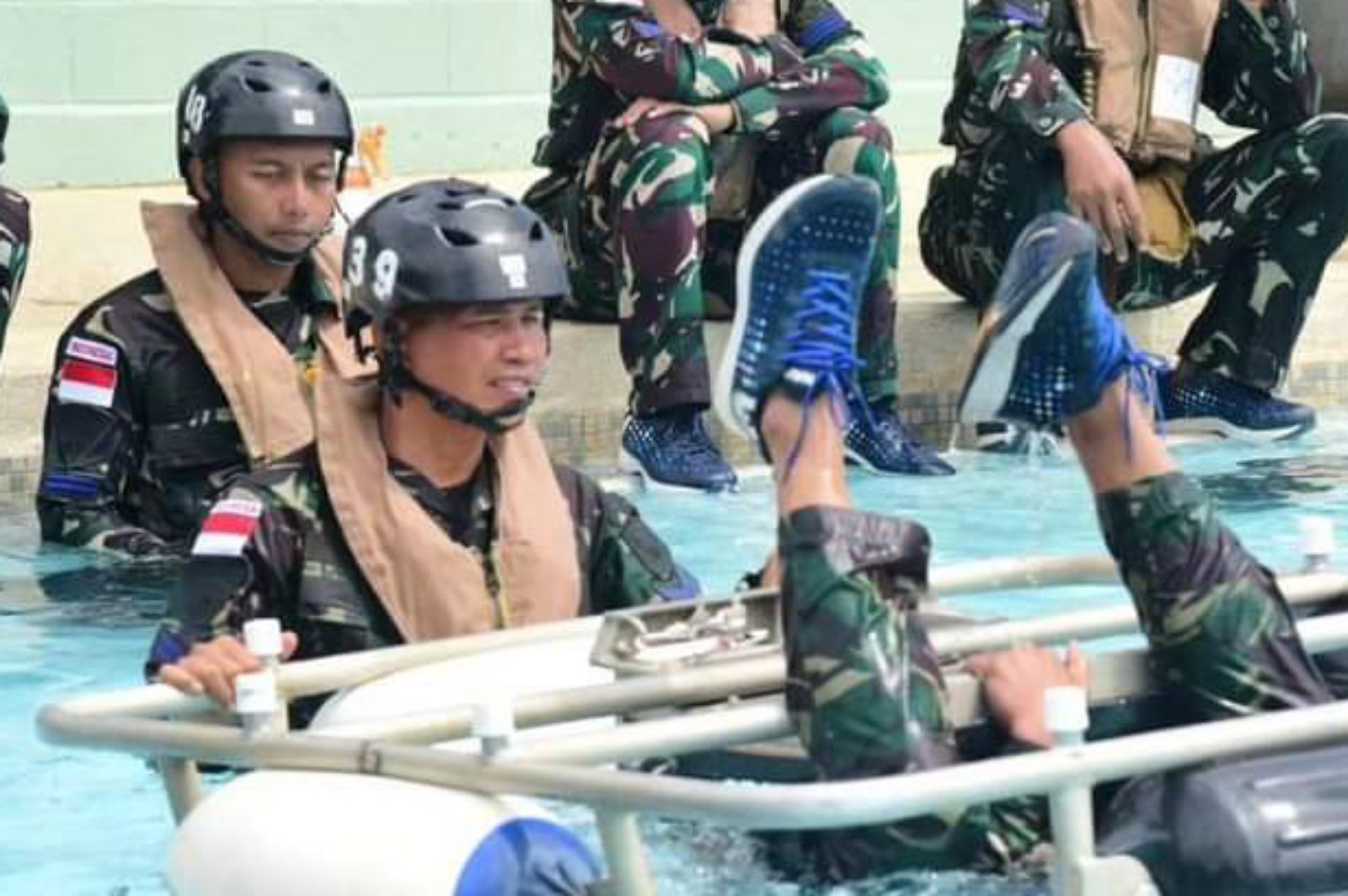Usai sesi kelas, para prajurit langsung mempraktikkan apa yang telah mereka pelajari di kolam renang latihan.