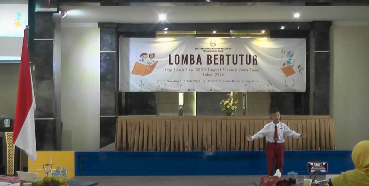 SURABAYA|ARTIK.ID - Dinas Perpustakaan dan Kearsipan (Disperpusip) Jatim menggelar lomba bertutur tingkat provinsi Jawa Timur. Acara yang diikuti sebanyak 25 siswa setingkat Sekolah Dasar (SD)/Madrasyah Ibtidaiyah (MI) se Jatim itu digelar di Ruang Graha Pustaka, Kantor Disperpusip Jatim, Jl. Menur Pumpungan 32 Surabaya, Rabu(3/7/2024).