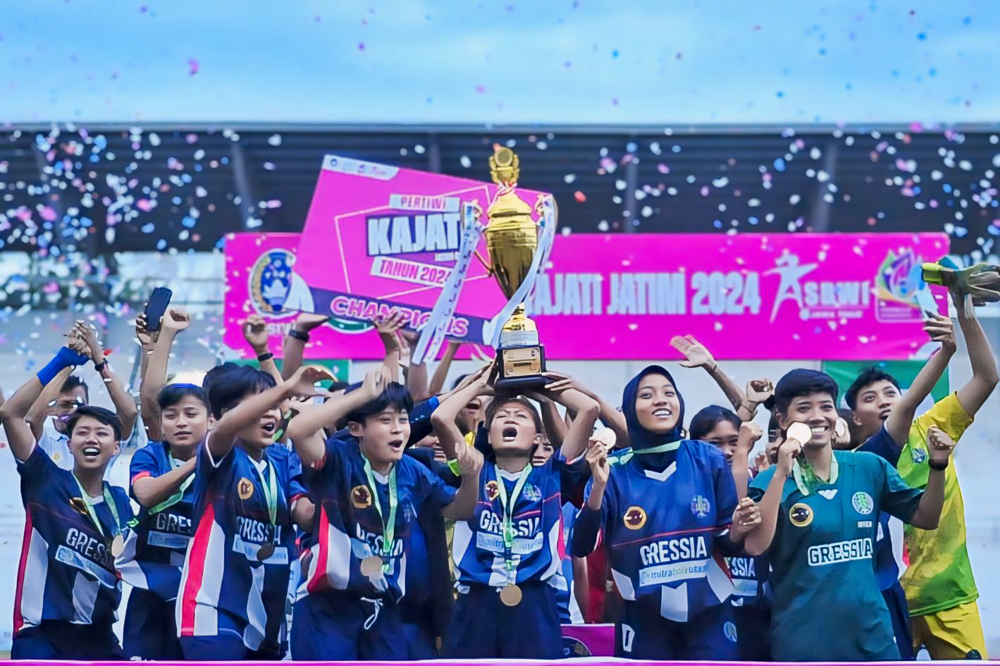 SURABAYA | ARTIK.ID - Gressia FC Gresik sukses menorehkan prestasi gemilang dengan meraih gelar juara Pertiwi Kajati Cup Jatim 2024. Kemenangan ini diraih setelah mengalahkan Persikoba Putri Kota Batu dengan skor 2-1 dalam laga final yang menegangkan di Stadion Semeru, Lumajang, pada Rabu (10/7).
