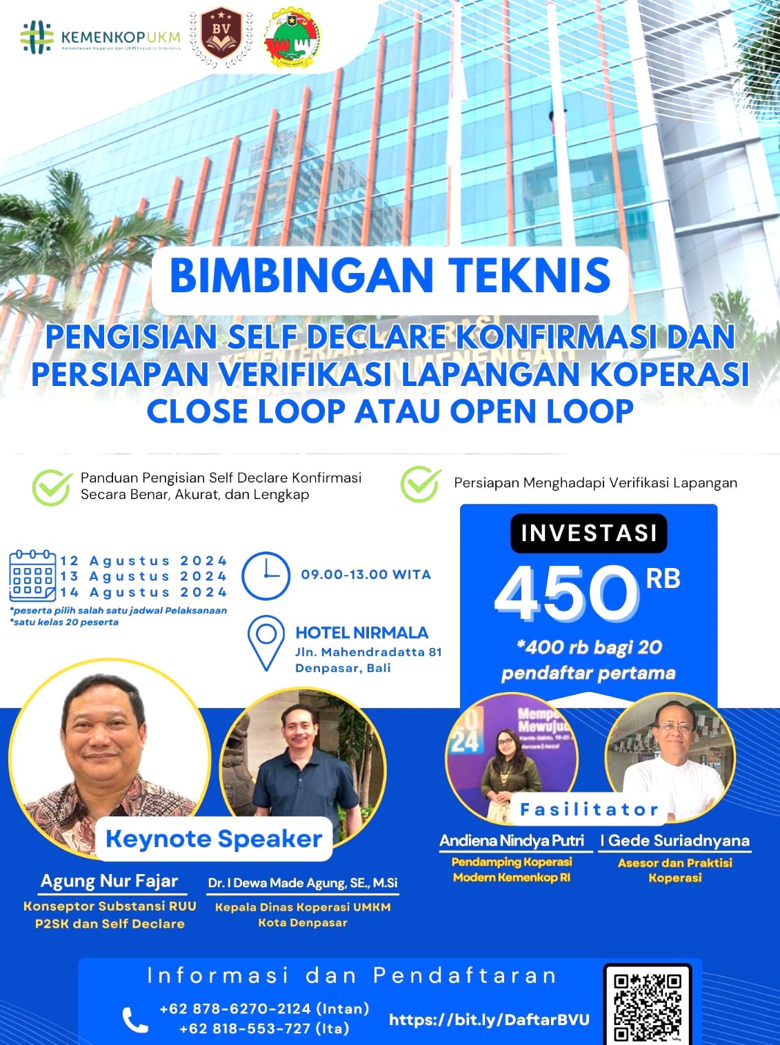 DENPASAR | ARTIK.ID - PT. BALICERTF VOKASI UTAMA mengadakan Bimbingan Teknis (Bimtek) untuk pengisian Self Declare Konfirmasi dan persiapan verifikasi lapangan bagi koperasi dengan sistem close loop atau open loop. Kegiatan ini bertujuan untuk memberikan panduan pengisian Self Declare yang benar, akurat, dan lengkap serta mempersiapkan peserta dalam menghadapi verifikasi lapangan.