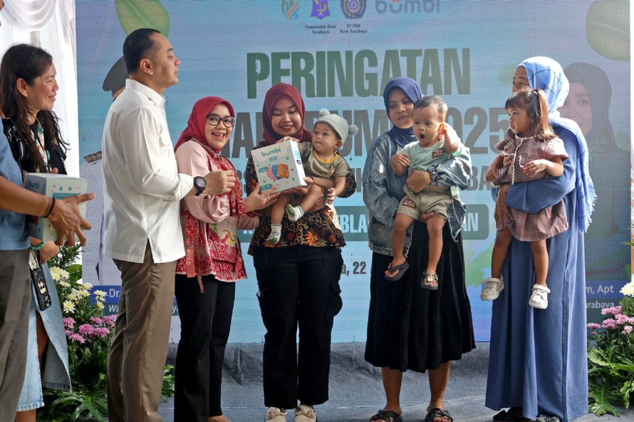 SURABAYA - Wali Kota Eri Cahyadi Imbau Warga Surabaya Tak Gunakan Popok Bayi dan Pembalut Sekali BuangPemerintah Kota (Pemkot) Surabaya menggelar edukasi sekaligus sosialisasi pengelolaan popok bayi dan pembalut sekali pakai di Kampung Geblak Jambangan, Jalan Jambangan Gang X, Kecamatan Jambangan, Selasa, (22/4/2025). Dalam sosialisasi ini, Pemkot Surabaya turut menggandeng Bumbi serta masyarakat Kampung Geblak Jambangan.