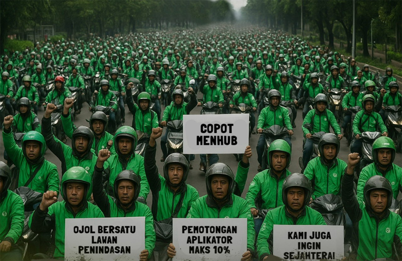 Aksi digelar sebagai bentuk penolakan terhadap kebijakan pemerintah yang dianggap merugikan para pengemudi ojol.