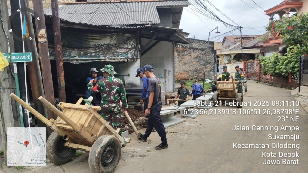 DEPOK – Program TMMD Ke-127 TA 2026 Kodim 0508/Depok terus bergerak progresif. Pada Sabtu, 21 Februari 2026, pengerjaan pembuatan drainase sepanjang 200 meter di Jl. Bojong Lio RT 03/28, Kelurahan Sukamaju, Kecamatan Cilodong, telah mencapai 50 persen.