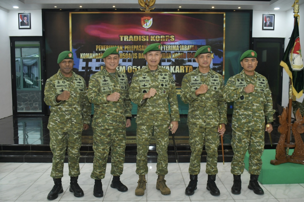 Kegiatan Sertijab berlangsung khidmat dan penuh makna, Sebagai insan yang beriman dan bertaqwa, marilah kita senantiasa memanjatkan puji syukur kehadirat Tuhan Yang Maha Esa, karena atas limpahan rahmat dan karunia-Nya, hari ini kita dapat mengikuti Acara Tradisi Korps dan Serah Terima Jabatan Dandim 0504/JS dari Kolonel Inf Amaraldo Comelius, kepada Letkol Kav | Nyoman Aetawan, S.Sos dan Dandim 0508/Depok dari Kolonel Triano Iqbal, SJ.P., M.Si. kepada Kolonel Inf Ginanjar Wahyutomo, S.H., M.Han, dengan khidmat dan dalam keadaan sehat wal'afiat