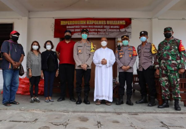 Kapolres menyerahkan bantuan itu secara langsung kepada Pastor Rekan Paroki St. Paulus Singaraja, RD Elias Helibertus Tison Marung, di Gereja St. Paulus, jalan Kartini no. 1 Singaraja. Romo Libert, menyampaikan banyak terima kasih atas kepedulian Kapolres serta para donatur dalam kondisi serba sulit saat ini, khususnya bagi umat Katolik di paroki itu yang terdampak Covid 19.Banyak umat yang terdampak covid 19. Bantuan yang diberikan ini sangat bermanfaat dan semoga menjadi berkat, ungkap Romo Libert.