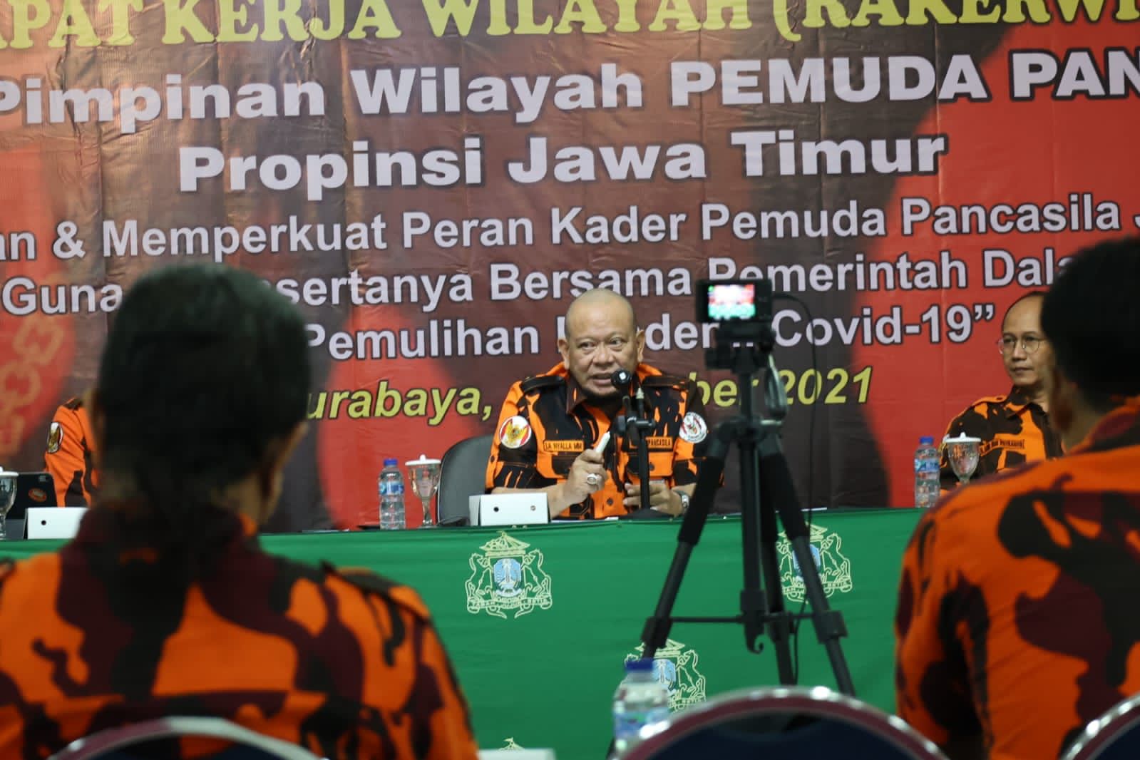 Ajakan itu disampaikan LaNyalla dalam Rapat Kerja Wilayah Pemuda Pancasila Jawa Timur di Surabaya, Minggu (10/10/2021). Rakerwil dengan tema 'Menegaskan dan Memperkuat Peran Serta Pemuda Pancasila Jawa Timur bersama Pemerintah dalam Upaya Pemulihan Pandemi Covid-19', diikuti Ketua MPC se-Jawa Timur dan kader lainnya.