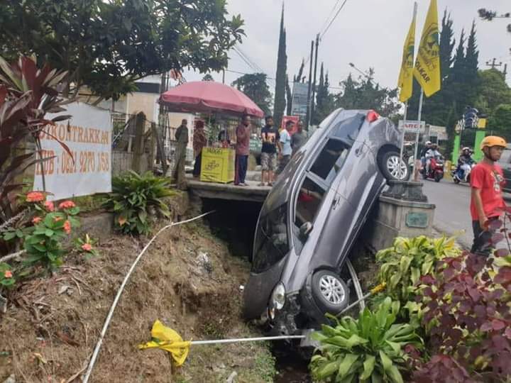 KARANGANYAR - Diduga mengalami rem blong, Honda Mobilio ringsek setelah meluncur tak terkendali hingga nyungsep ke parit di Kelurahan Beji, Kecamatan Tawangmangu, Kabupaten Karanganyar, Sabtu (16/10/2021).