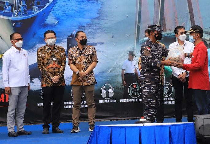 "Mulai vaksin maritim dan semua kegiatan di Kota Surabaya yang hari ini dicontohkan dengan kebersihan laut Kenjeran di Jembatan bentang timur dan barat juga dari Bapak Pangkoarmada II dan seluruh jajarannya," ungkapnya.