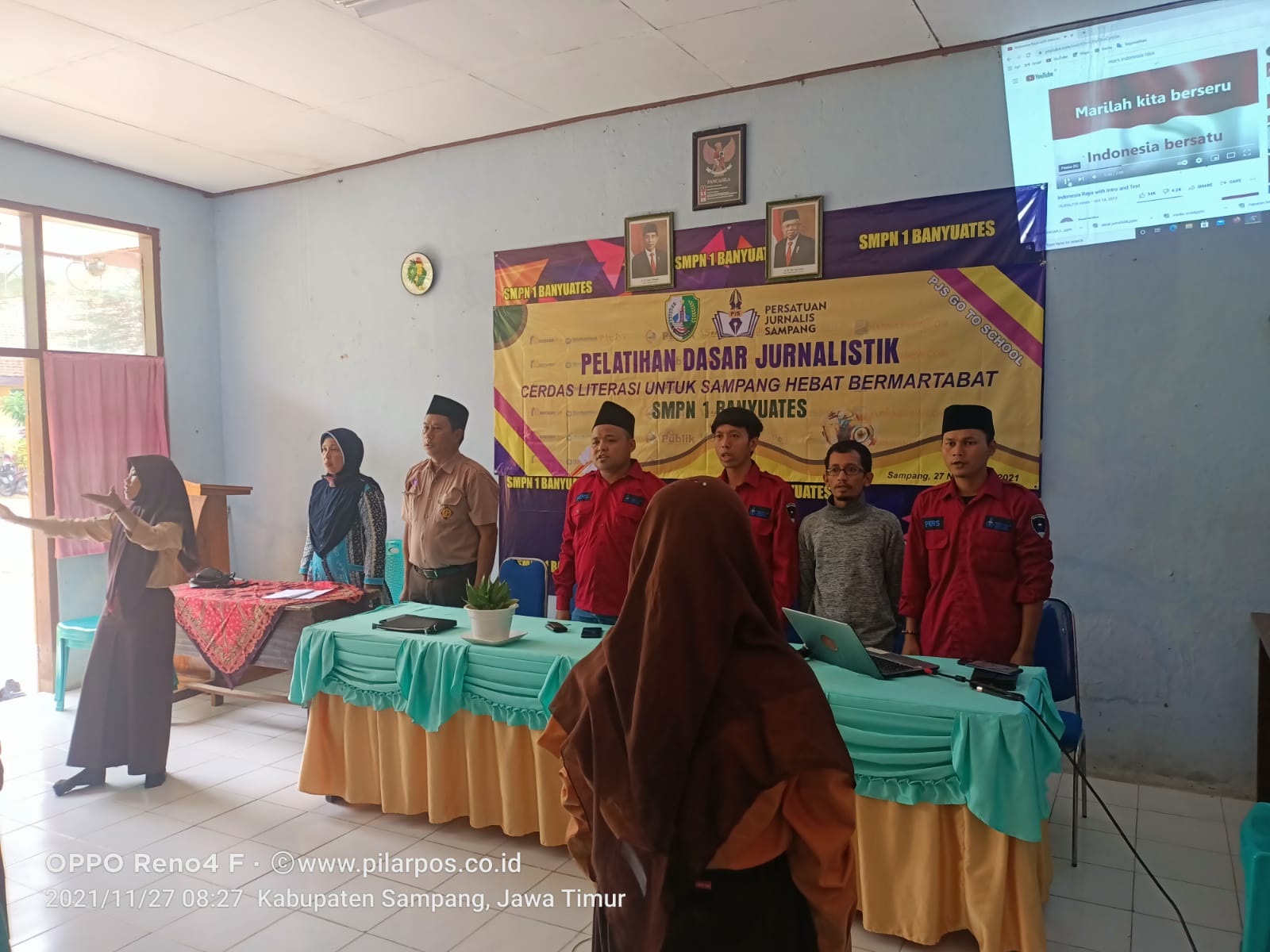 SAMPANG - Mengusung tema "Cerdas Literasi untuk Sampang Hebat Bermartabat", Persatuan Jurnalis Sampang (PJS) menggelar safari jurnalistik perdana di Sekolah Menengah Pertama Negeri (SMPN) 1 Banyuates, Sabtu pagi, (27/11/2021).