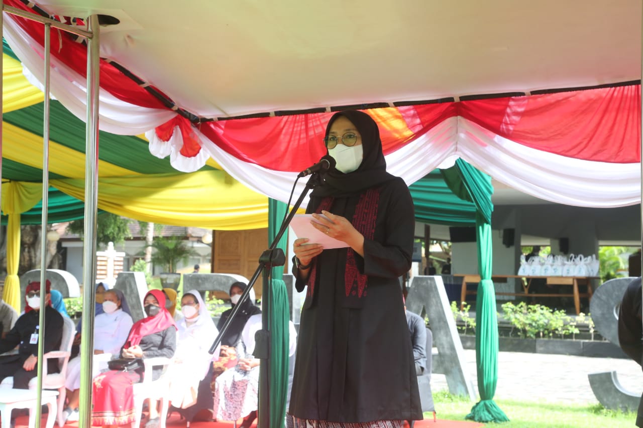 SURABAYA - Dalam rangka memperingati Hari Kesehatan Nasional (HKN) ke 57 Tahun 2021 di Kabupaten Banyuwangi diperingati dengan upacara di halaman Pendopo Sabha Swagata Blambangan Banyuwangi. Dalam upacara tersebut, Bupati Banyuwangi Ipuk Fiestiandani menyerahkan penghargaan pada pihak yang terlibat dalam penanganan pandemi.