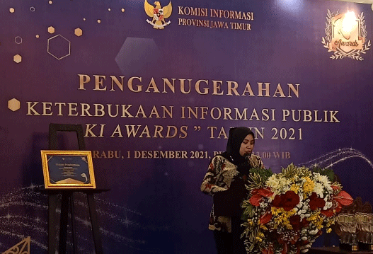 BOJONEGORO - Pemkab Bojonegoro raih penghargaan tertinggi, pringkat (A), pada kategori badan publik informatif tingkat kabupaten dan kota se-Jawa Timur. Penerimaan penganugrahan Keterbukaan Informasi Publik "KI Award" 2021 oleh Komisi Informasi Provinsi Jawa Timur ini digelar secara semi virtual, Rabu (1/12/2021).