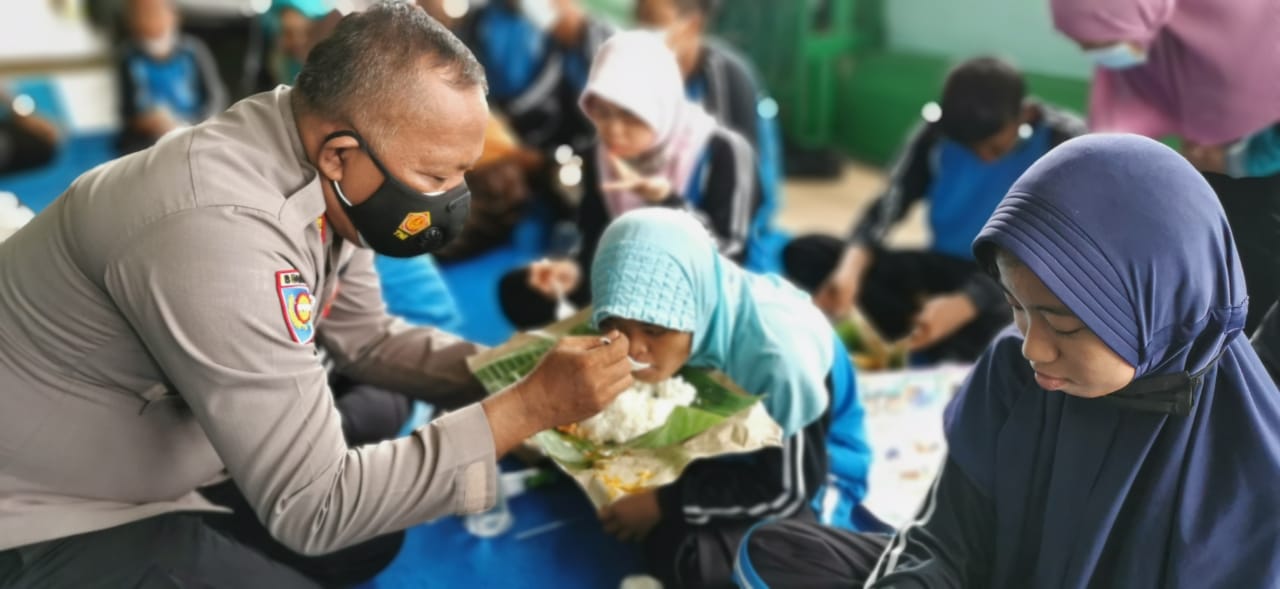 Personil Sat. Binmas Polres Sampang juga membagikan bunga, nasi kotak dan makanan kecil kepada seluruh siswa dan siswi dan seluruh dewan guru SLBN Sampang.