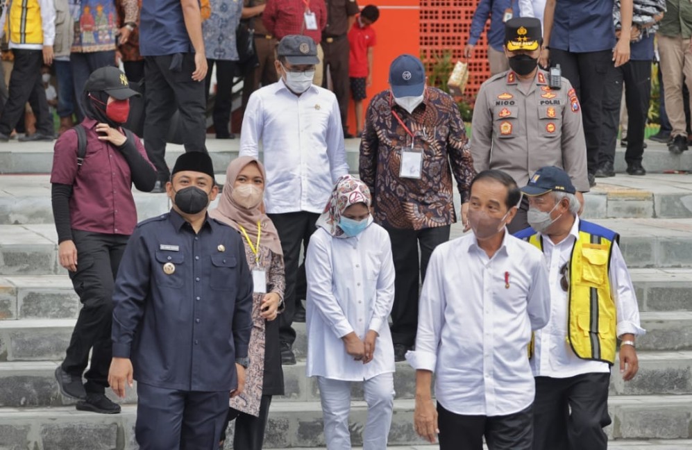 ARTIK.ID - Forkopimda Jawa Timur, dampingi kunjungan kerja Presiden RI Joko Widodo dalam rangka Peresmian Pasar Besar Ngawi, pada Jumat (17/12/2021). Selain itu, Presiden juga menyerahkan bantuan langsung tunai kepada Pedagang Kaki Lima dan Warung (BT - PKLW). Hal ini dilakukan sebagai upaya pemerintah dalam pemulihan ekonomi nasional (PEN) di masa pandemi Covid-19.
