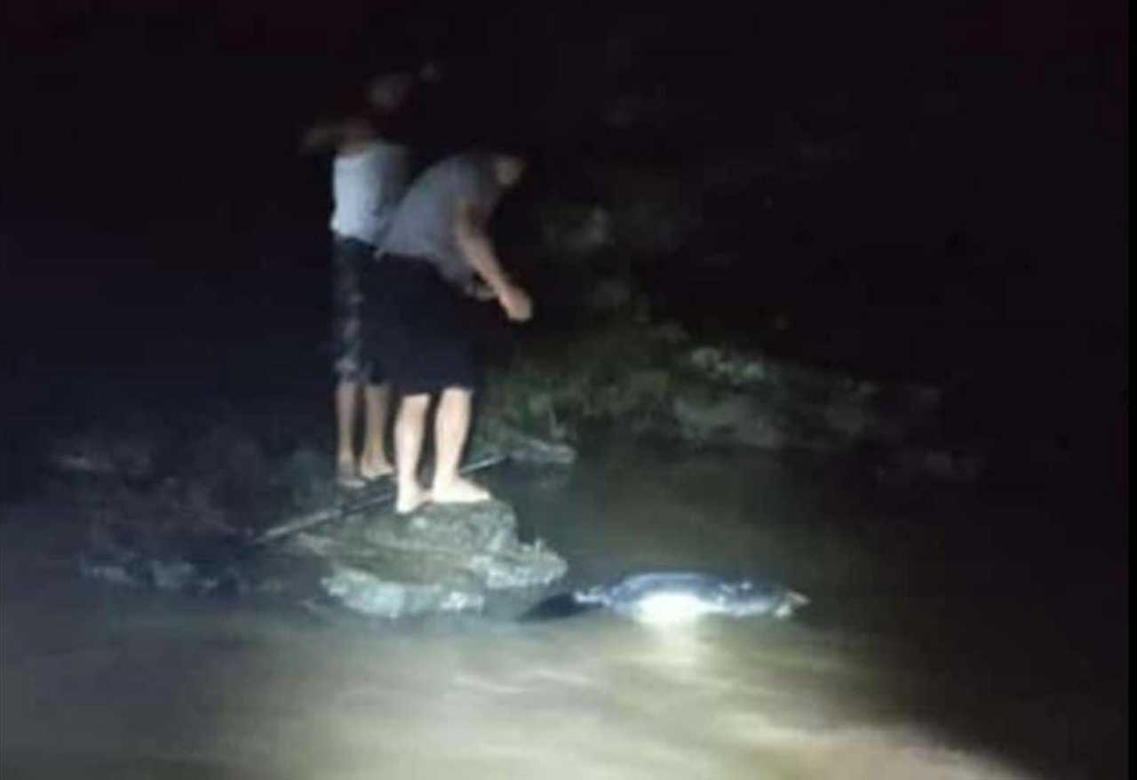 Pemancing melihat sesuatu yang tersangkut di rumpun bambu, setelah didekati benda yang mengapung tersebut ternyata sesosok mayat perempuan paruh baya.