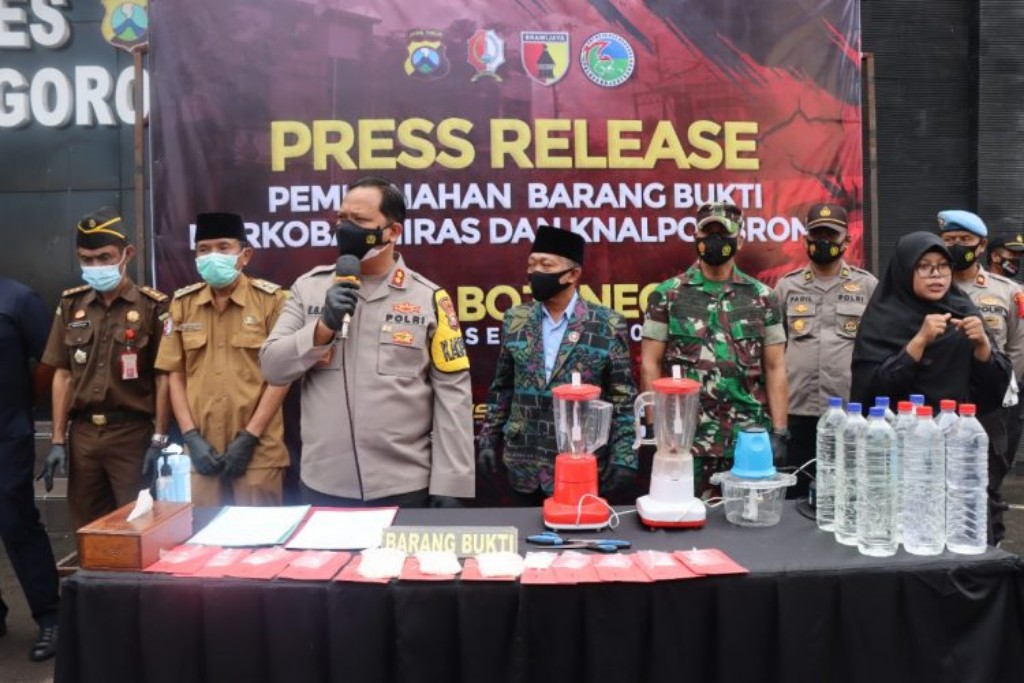 Kapolres Bojonegoro, AKBP EG Pandia mengatakan, pemusnahan barang bukti narkoba dan miras iadalah hasil operasi dari Satuan Reserse Narkoba (Sat Reskoba) dan Satuan Reserse dan Kriminal (Sat Reskrim) Polres Bojonegoro dan Jajaran.