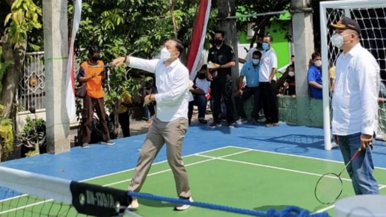 SURABAYA | ARTIK.ID - Wali Kota Eri Cahyadi meresmikan lapangan olahraga yang bisa dipakai untuk bermain bulu tangkis, futsal, dan basket di Perumahan Griya Citra Asri RW 07 Kelurahan Sememi, Kecamatan Benowo, Surabaya.