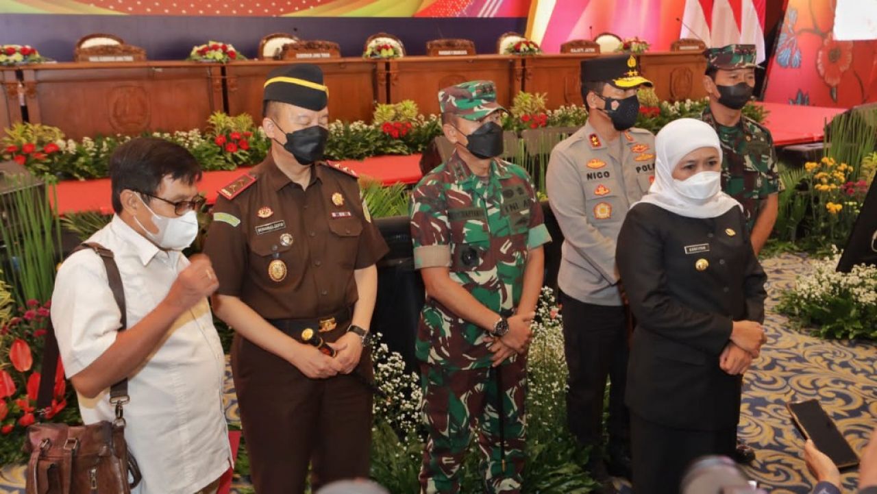 Gubernur Jatim Khofifah Indar Parawansa, Wagub Jatim Emil Elestianto Dardak, Pangdam V/Brawijaya Mayjen TNI Nurchahyanto, Kapolda Jatim Irjen Pol Nico Afinta, Kajati Jatim Mohamad Dofir, dan Pangkoarmada II Laksda TNI Iwan Isnurwanto, secara langsung memimpin rakor yang dihadiri oleh seluruh Bupati, PJU Polda Jatim, PJU Kodam/V Brawijaya, Kapolres/ta, Dandim, dan seluruh Kajari di Jawa Timur.