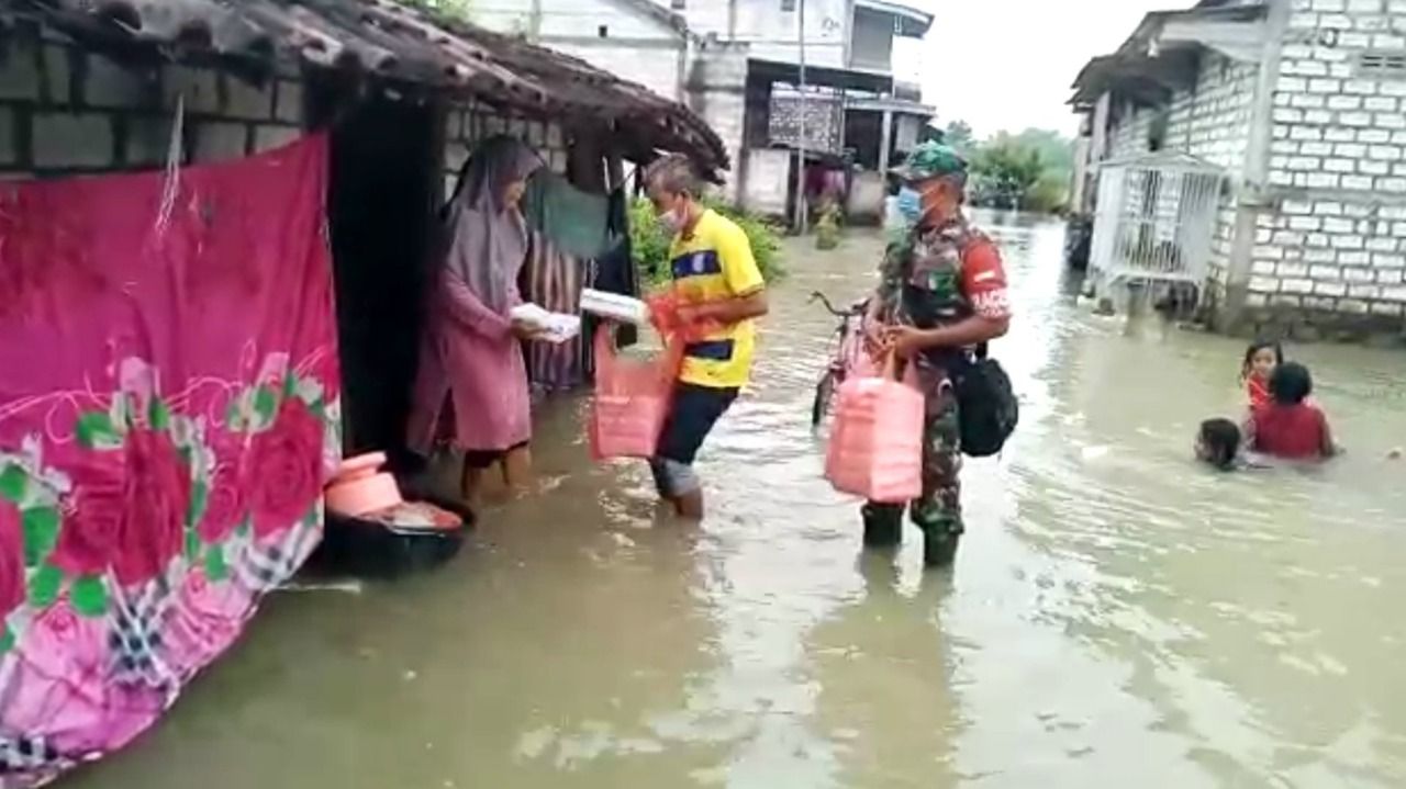 GRESIK | ARTIK.ID - Kodim 0817gresik ,Sampai hari ini beberapa Desa di Kecamatan Benjeng tergenang Banjir akibat luapan Kali Lamong, sehingga menjadi perhatian seluruh Babinsa Koramil 0817/10 Benjeng untuk memantau dan memastikan kondisi masyarakat aman tetap menjaga kesehatan. dikarenakan mayoritas Masyarakat lebih memilih untuk tetap tinggal dirumah karena tidak bisa melakukan aktifitas sehari-hari, Jum’at(11/2/2022).