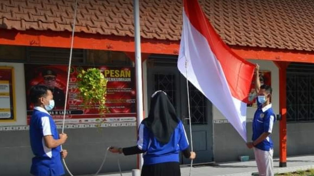 Kegiatan tersebut melibatkan Warga Binaan Pemasyrakatan (WBP) sebagai pengibar bendera Merah Putih.
