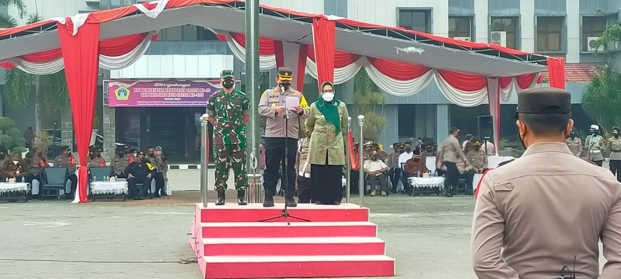 GRESIK I ARTIK.ID - Apel Pergeseran Pasukan pengamanan Pilkades bergelombang tahun 2022 di wilayah Kabupaten Gresik, digelar di Halaman Kantor Pemerintah Kabupaten Gresik dengan dihadiri oleh Wakil Bupati Gresik Aminatun Habibah, Kapolres Gresik, AKBP. Mochamad Nur Azis, SH., S.I.K., M.Si., Dandim 0817/Gresik, Letkol Inf. Taufik Ismail, S. Sos., M.I.Pol. serta Ribuan Personil Gabungan dari TNI-Polri, Satpol PP Kabupaten Gresik.Jum'at pagi (25/03/22).