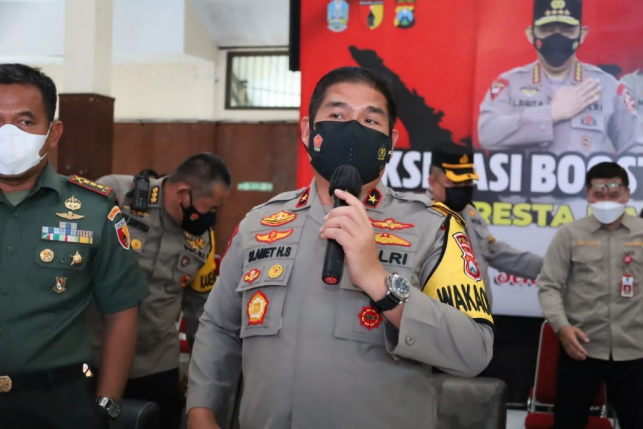 Usai mengikuti vaksinasi massal secara virtual dengan Wakapolri. Brigjen Pol Slamet Hadi Supraptoyo, menjelaskan, bahwa di Malang Kota untuk Vaksin pertama belum memenuhi target, vaksin kedua khususnya lansia juga belum memenuhi target. Demikian vaksin ketiga atau Booster.