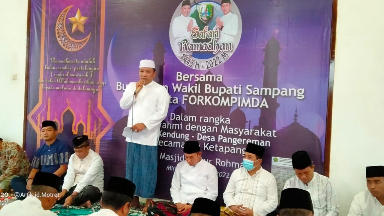 SAMPANG | ARTIK.ID - Pemkab Sampang kembali melakukan Safari Ramadan, kali ini digelar di Masjid Baiturrahman, Dusun Kendung, Desa Pangereman, Kecamatan Ketapang, Minggu (10/4/2022).