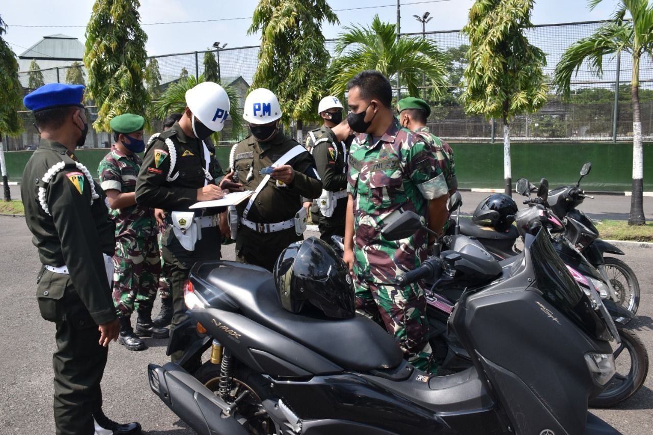 SURABAYA I ARTIK.ID - Korem 084/Bhaskara Jaya bersama Denpom V/4 Surabaya melaksanakan kegiatan pengecekan dan pemeriksaan kendaraan dinas maupun pribadi, bertempat di Lapangan apel Makorem 084/BJ Jalan Jendral Ahmad Yani No.01 Surabaya.Senin(11/04/2022).