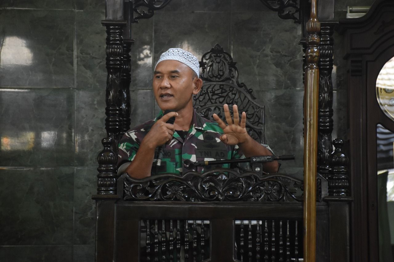 SURABAYA I ARTIK.ID - Kasrem Korem 084/Bhaskara Jaya Kolonel Inf H. Sugiyono S.Sos M.Si. memberikan kuliah tujuh menit (kultum) di Bulan Suci Ramadhan yang di gelar Setelah Sholat Dhuhur bertempat di Masjid Al-Wathon Makorem 084/BJ, Jalan Ahmad Yani No.1 Surabaya.senin (11/04/2022)