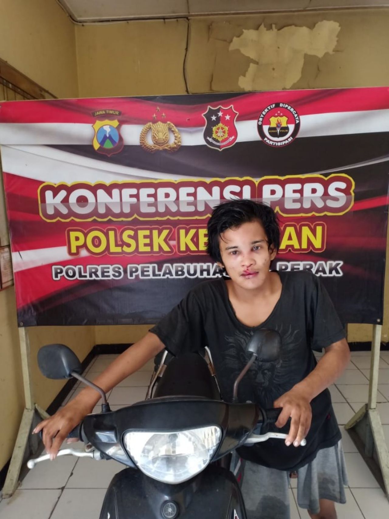 Denny Lam (29), warga Dukuh Bulak Banteng Timur 8 Surabaya, dengan No, LP/ 46 / IV /2022/Jatim/ Res. Pel. Tg. Perak/Sek KENJERAN, yang motornya dicuri oleh Umar bersama kedua rekannya RL dan RS (DPO), Yamaha Mio warna Hitam, Nopol W 4988 OH. Setelah mendapatkan laporan adanya pencurian dan dapat diamankan oleh korban beserta warga, petugas langsung mendatangi TKP dan mengamankan tersangka bersama barang buktinya.