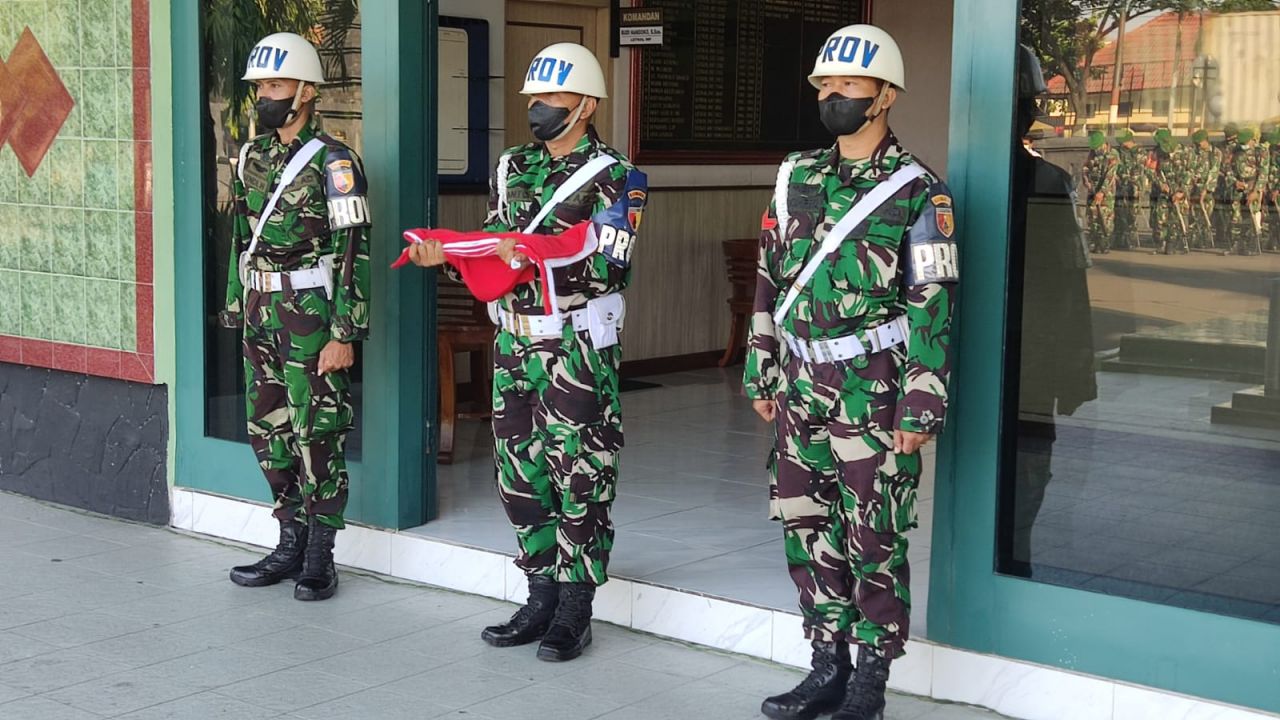 SURABAYA I ARTIK.ID - Prajurit dan PNS jajaran Kodim 0830/Surabaya Utara gelar upacara bendera yang dilaksanakan setiap hari Senin, bertempat di lapangan Makodim 0830/Surabaya Utara Jl. Gresik No.52, Perak Barat, Kecamatan Krembangan, Senin (30/05/2022).