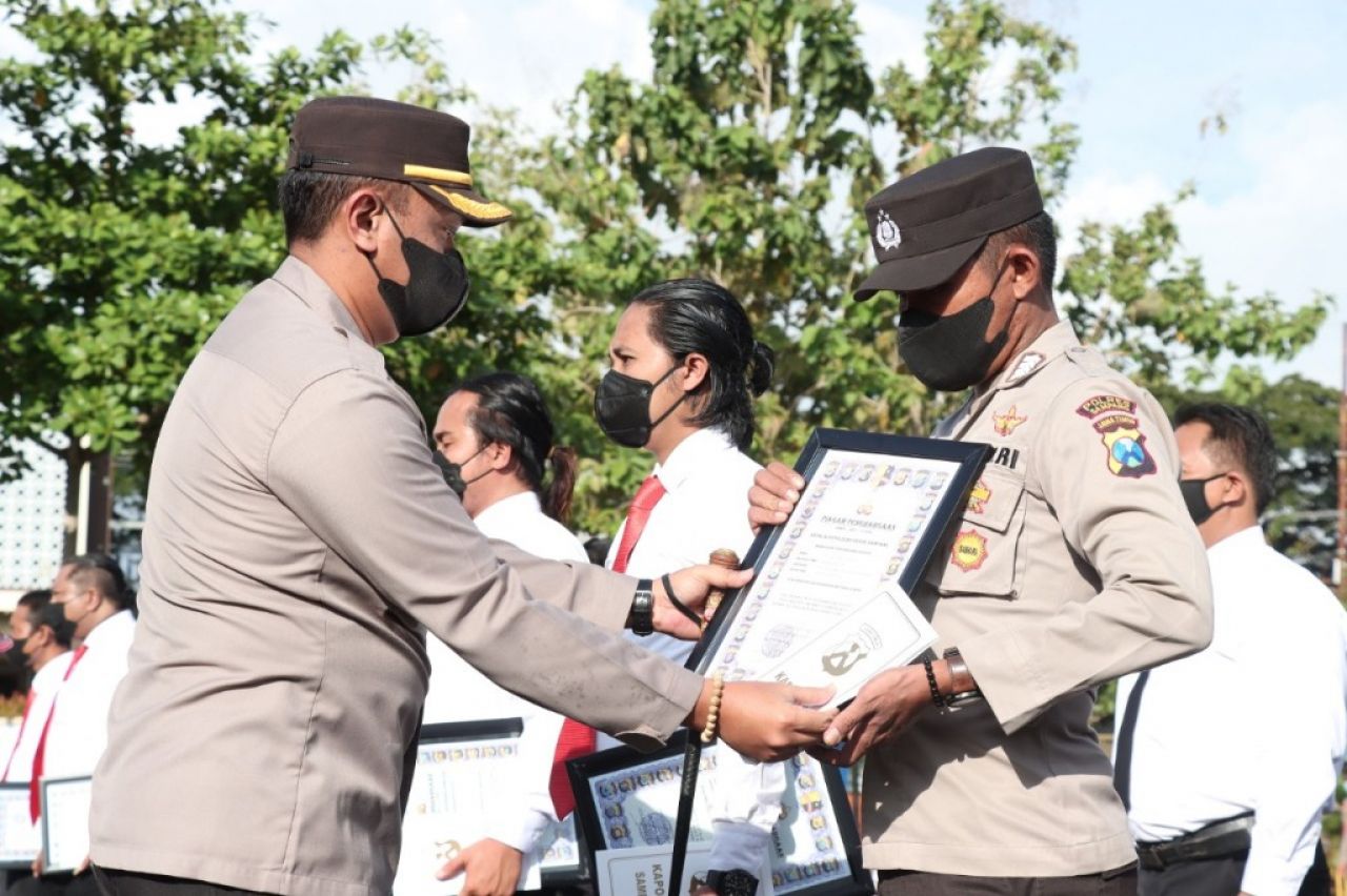 Kapolres Sampang juga menyampaikan bahwa seluruh personil Polres Sampang berhak mendapatkan reward atau penghargaan dari pimpinan karena prestasinya dalam melaksanakan tugas-tugas Kepolisian sesuai dengan tugas dan tanggung jawabnya.