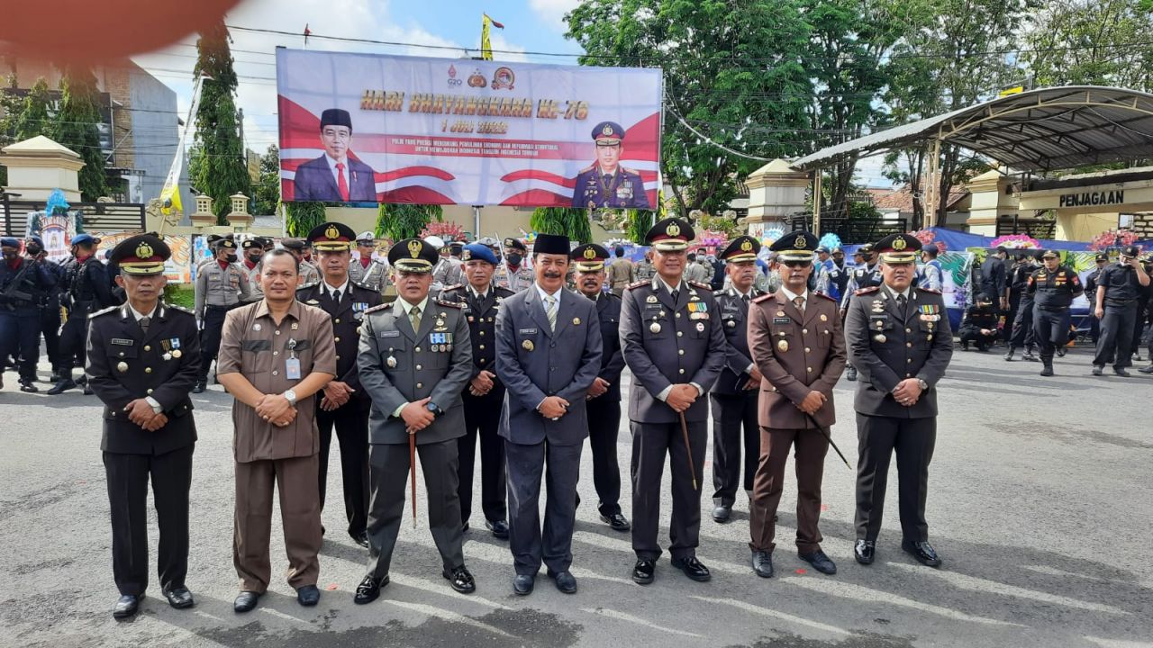 Pelaksanaan upacara peringatan Hari Bhayangkara Ke-76 dilaksanakan secara sederhana dengan menerapkan protokol kesehatan.
