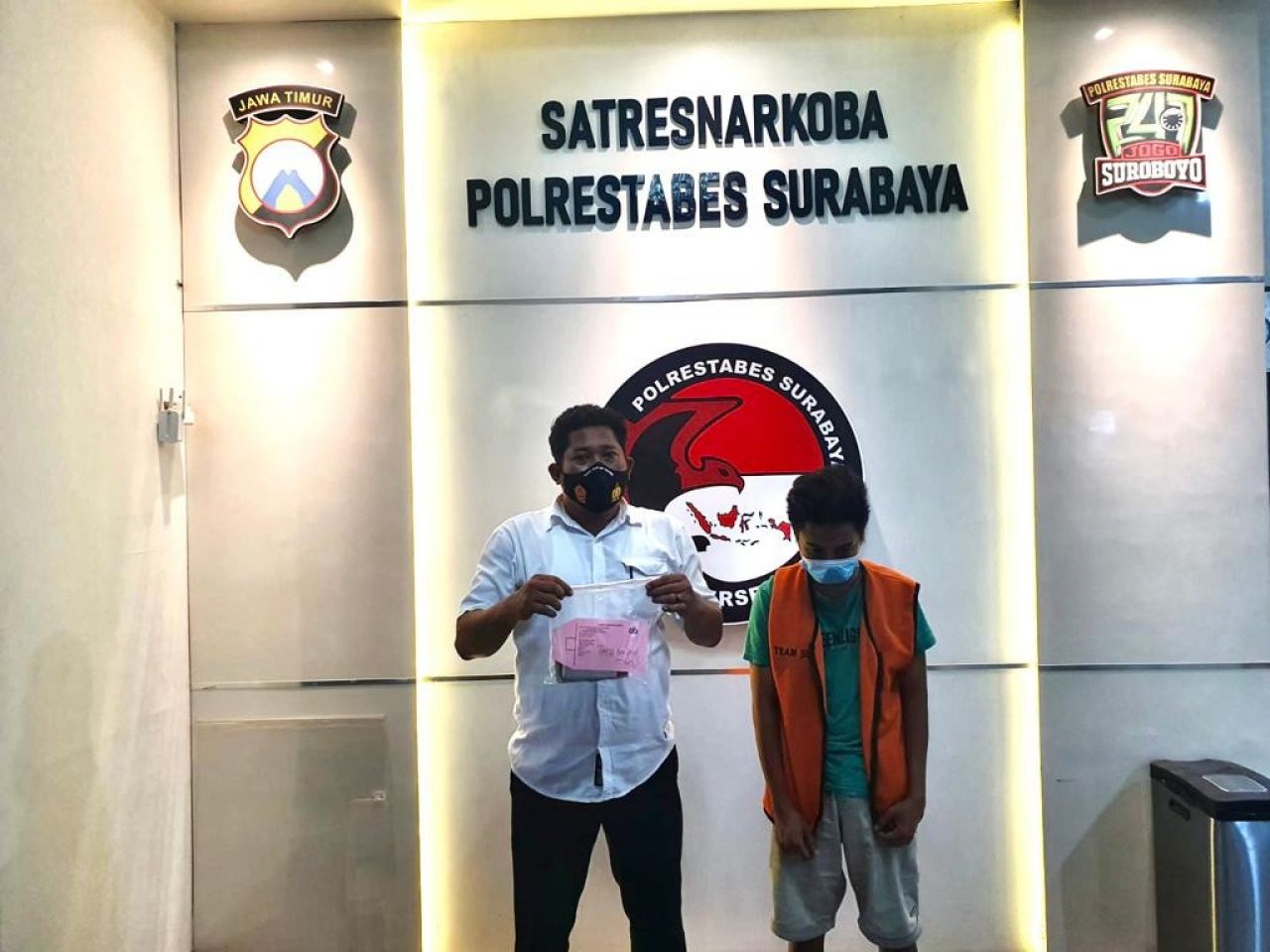 SURABAYA | ARTIK.ID - HF, (24), asal Jalan Mojoklanggru Lor baru Surabaya ditangkap Satresnarkoba Polrestabes Surabaya, lantaran terlibat dalam kasus peredaran barang terlarang jenis sabu sabu.