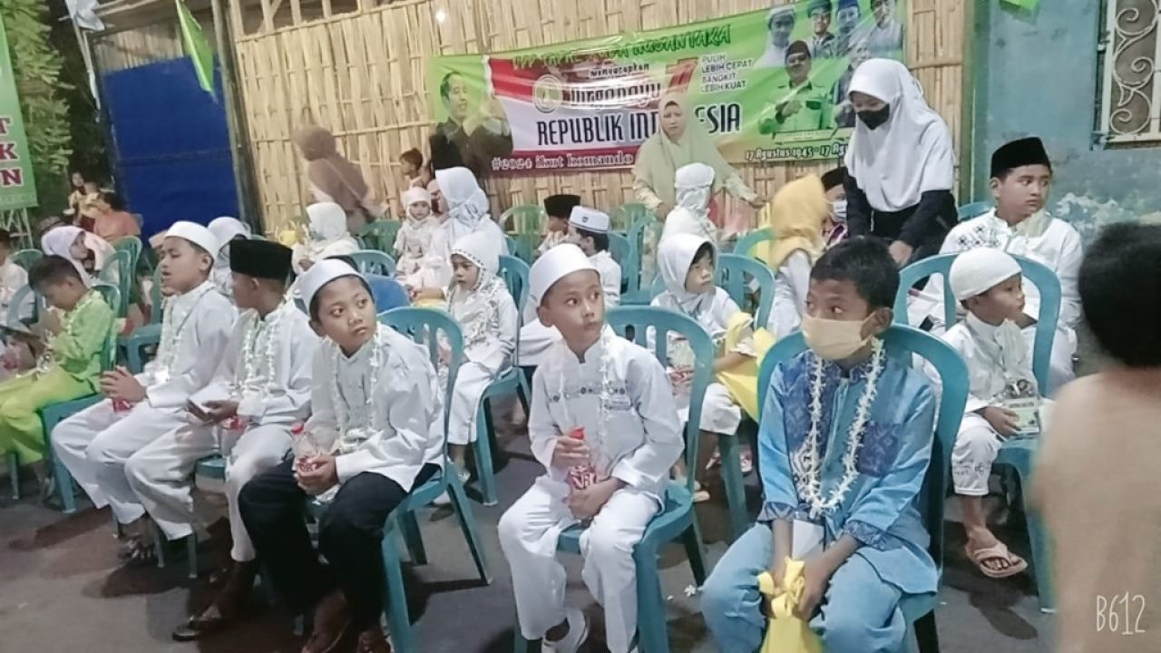 Tampak pengurus lainnya memberikan santunan kepada 100an anak yatim piatu, di ikuti para darmawan lainnya secara bergantian, suasana haru bersamaan sholawat Nabi dikumandangkan, tetesan air mata tak terbendung dari para dermawan di bulan asyuro yang bertepatan dengan H U T kemerdekaan Republik Indonesia ke 77 tahun.