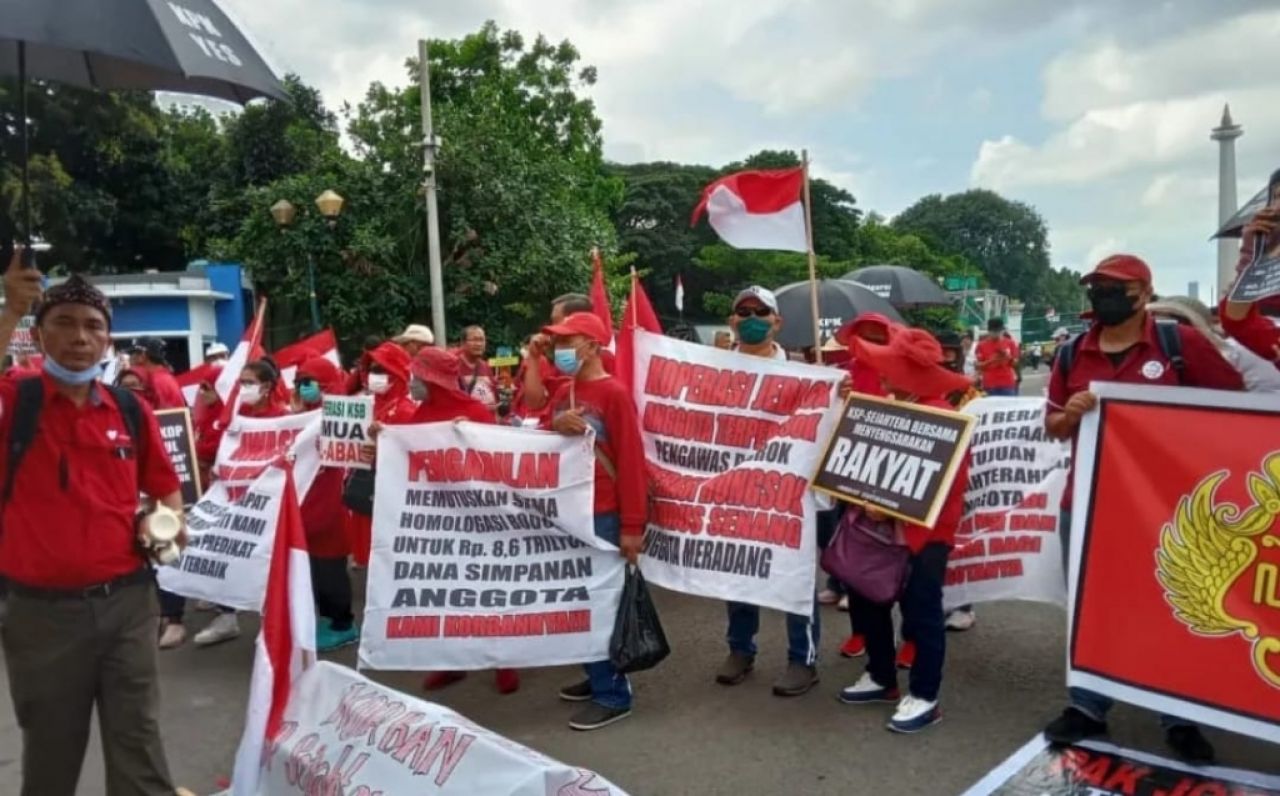 JAKARTA | ARTIK.ID - Ratusan korban anggota Koperasi Simpan Pinjam Sejahtera Bersama melakukan aksi damai disekitaran Patung Kuda Monas, Jakarta, Senin, 1 September 2022. Mereka menuntut agar Presiden RI Joko Widodo turun tangan langsung dalam menindaklanjuti kasus gagal bayar tersebut.