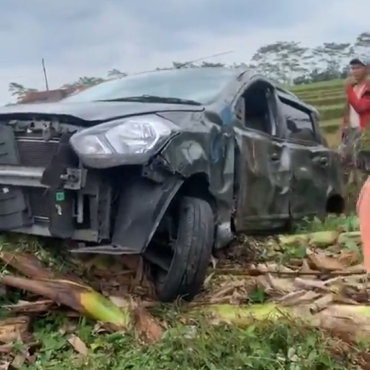Dalam pantauan, tidak ada korban jiwa, sedangkan kondisi mobil ringsek masuk ke saluran drainase jalan.