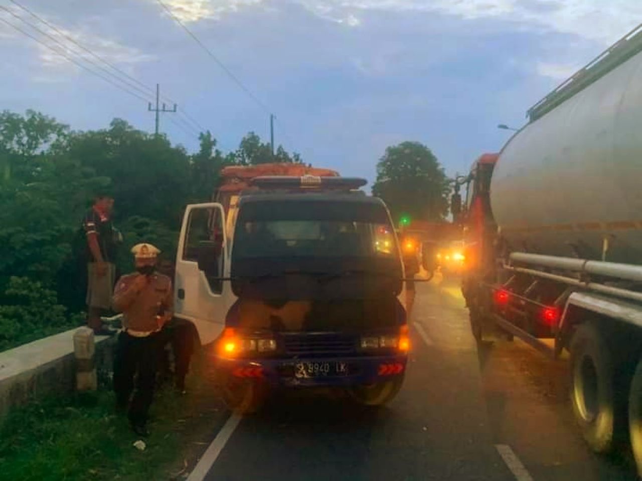 Saat itu, truk melaju dari arah barat dan kehilangan kendali hingga oleng kekanan lalu menabrak tiga kendaraan bermotor yang melaju dari arah berlawanan.