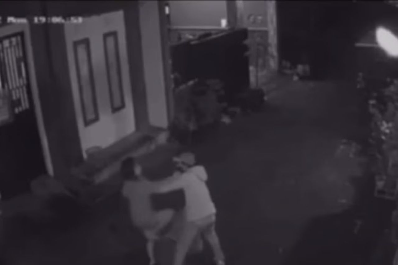 Tampak dalam rekaman video itu, seorang pria menggunakan setelan sweters dan topi cekcok dengan seorang perempuan. Tidak lama pemuda itu membanting perempuan tersebut.
