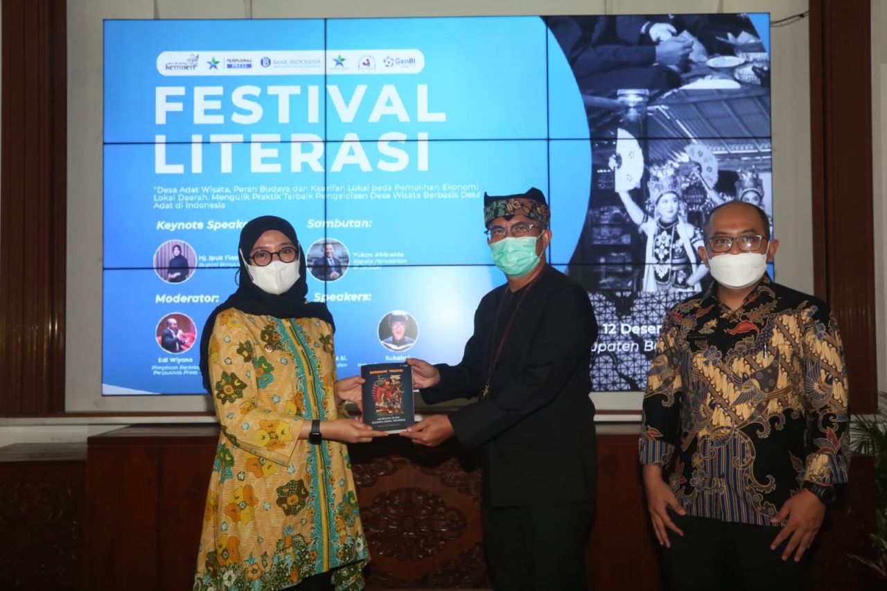 BANYUWANGI | ARTIK.ID - Bank Indonesia mendukung pariwisata di Banyuwangi sebagai bagian upaya pemajuan ekonomi. Salah satu bentuk dukungan tersebut, BI menggandeng Perpustakaan Nasional Republik Indonesia menerbitkan buku berjudul “Merekam Jejak Budaya Osing Kemiren".