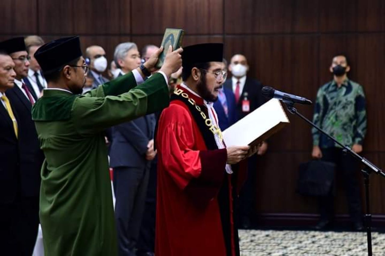 “Saya bersumpah bahwa saya akan memenuhi kewajiban Ketua/Wakil Ketua Mahkamah Konstitusi dengan sebaik-baiknya dan seadil-adilnya, memegang teguh Undang-Undang Dasar Negara Republik Indonesia Tahun 1945, dan menjalankan segala peraturan perundang-undangan dengan selurus-lurusnya menurut Undang-Undang Dasar Negara Republik Indonesia Tahun 1945, serta berbakti kepada nusa dan bangsa,” ujar Anwar Usman dan Saldi Isra mengucapkan penggalan sumpah jabatannya secara bergantian di hadapan para hakim konstitusi.
