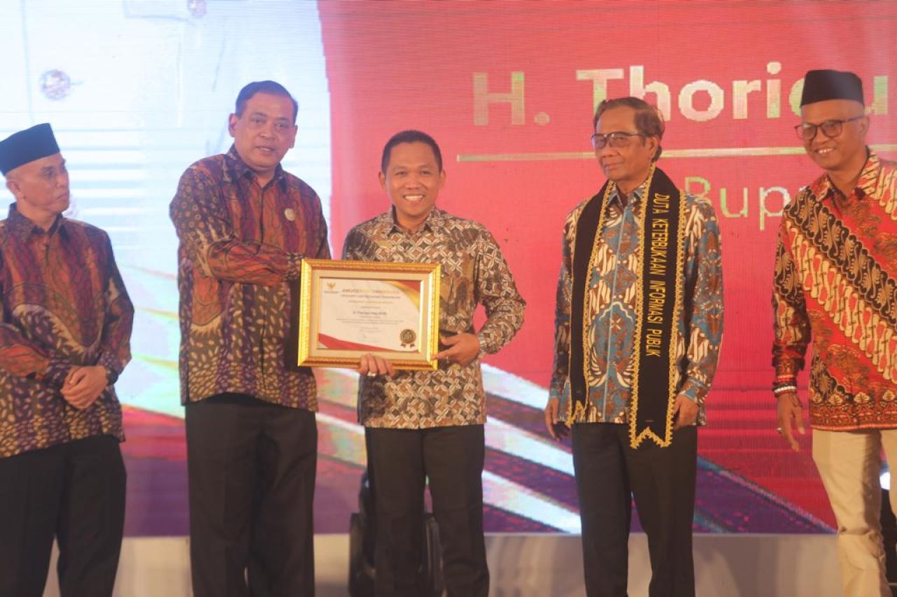 SURABAYA | ARTIK.ID - Bupati Lumajang, Thoriqul Haq, menjadi satu-satunya perwakilan di Jawa Timur yang menerima Anugerah Upakarti Tinarbuka Artheswara Terbaik Ke-2 Kategori Bupati Tahun 2023, yang digelar Komisi Informasi Pusat.