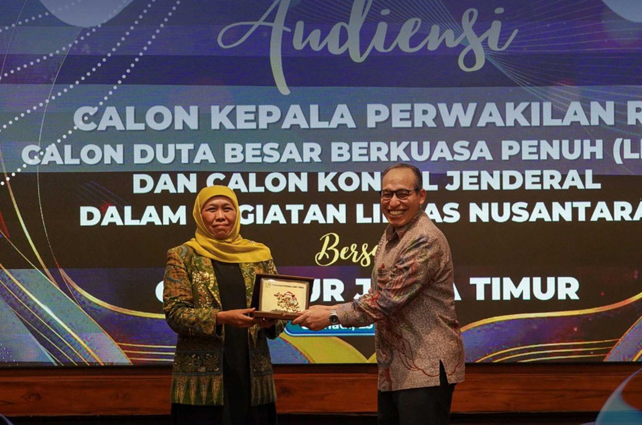 SURABAYA | ARTIK.ID - Gubernur Jawa Timur Khofifah Indar Parawansa menerima 20 calon Kepala Perwakilan RI yang terdiri dari 13 calon Duta Besar Luar Biasa Berkuasa Penuh (LBBP) serta 7 calon Konsul Jenderal dalam kegiatan Lintas Nusantara yang diselenggarakan oleh Kementerian Luar Negeri RI, Rabu (07/06/2023)