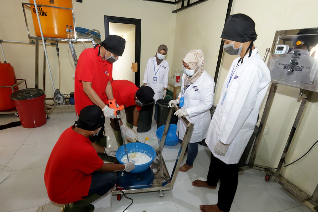 Selain Andi, ada juga Yaidi, warga Karangrejo III RT 03/RW 08 ini mengaku baru pertama kali memproduksi sabun pencuci piring. Menurutnya, bagian paling mudah adalah mencampur bahan-bahan, kemudian mengaduk menggunakan mesin produksi.