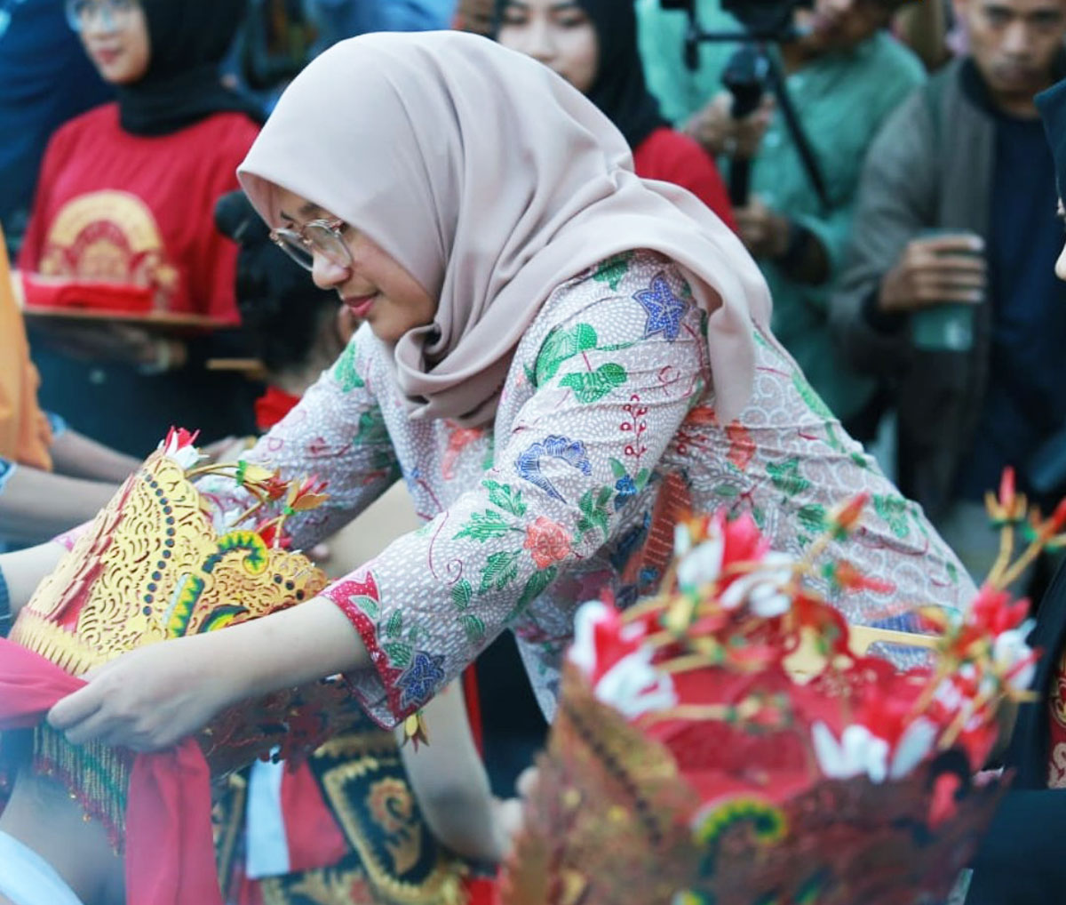 “Selamat kepada kalian semua anak-anakku. Saya sangat bangga kepada kalian semua yang telah bersungguh-sungguh latihan selama dua buan lebih untuk bersama-sama dengan ribuan penari menampilkan pertunjukan yang selalu kita banggakan semua, Gandrung Sewu,” kata Ipuk saat menyemangati mereka.